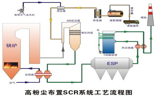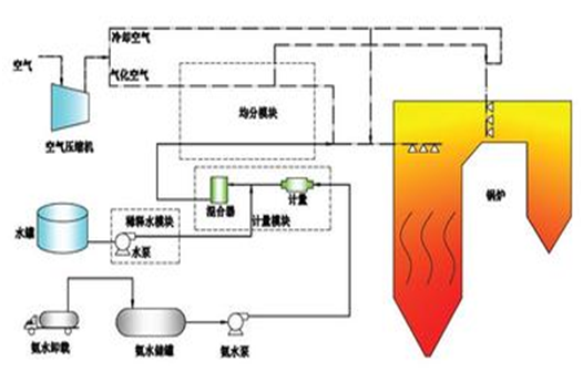 系統(tǒng)介紹 我公司以SNCR、SCR單獨(dú)或組合模式作為脫硝技術(shù),SNCR(無(wú)催化劑)適應(yīng)于鍋爐出口850-1100℃的煙氣,SCR(有催化劑)適用于省煤器側(cè)350-400℃的煙氣,通常工程上采用SNCR和SCR組合的方式,實(shí)現(xiàn)較高的脫硝效率,脫硝效率可控制在90%以上,脫硝系統(tǒng)工藝能較好滿足國(guó)家超凈排放標(biāo)準(zhǔn)(NOx排放濃度≤50mg/Nm3)。 主要技術(shù)指標(biāo) 還原劑:20%氨水或尿素溶液 脫硝效率:65%~70%(SNCR法) ≥85% (SCR法) ≥90% (SNCR和SCR組合法) 氨逃逸: 3~8PPm 系統(tǒng)運(yùn)行同步率:100% 工藝流程